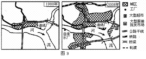 图3为“某城市空间形态变化示意图”。读图完成9-10题。