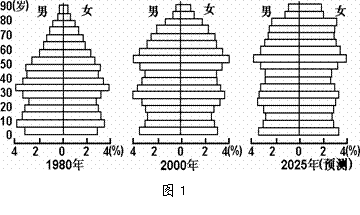 图1反映了亚洲某国人口增长与构成的变化及其发展趋势。读图完成1-2题。