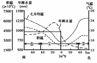 8.下图是我国境内111°E经线沿线的气候统计资料。据此完成下列问题。