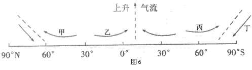 6.如果该图表示东亚季风环流,a处是亚欧大陆,则甲处的风向是