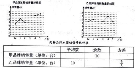 21、为了惠农强农,同时拉动国内消费需求,某市从2008年12月1日起开展了“家电下乡”工作.该市某家电公司的一个营销点记录了自2008年12月份至2009年5月份所销售的甲、乙两种不同品牌的冰箱的数量,以下是根据销售数据制作的两种品牌销售量折线图和统计表的一部分: