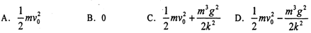 71.(重庆市万州二中2010届高三下学期3月月考试题)如图所示,一个质量为m的圆环套在一根固定的水平长直杆上,环与杆的动摩擦因数为μ。现给环一个向右的初速度Vo,同时对环施加一个竖直向上的作用力F,并使F的大小随v的大小变化,两者关系F=kv,其中k为常数,则环在运动过程中克服摩擦力所做的功大小不可能为 ( C )