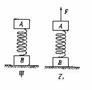 (山东省聊城市2010届高三第一次模拟考试试题)质量相等的两木块A、B且一轻弹簧栓接,静置于水平地面上,如图甲所示。现用一竖直向上的力F拉动木块A,使木块A向上做匀加速直线运动,如图乙所示。在木块A开始运动到木块B将要离开地面的过程中,弹簧始终处于弹性限度内,下述判断正确的是( A )