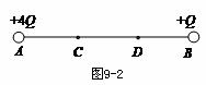 上海市六校2010届高三第一次联考如图9-2所示,点电荷+4Q与+Q分别固定在A、B两点, C、D两点将AB连线三等分,现使一个带负电的粒子从C点开始以某一初速度向右运动,不计粒子的重力,则该粒子在CD之间运动的速度大小