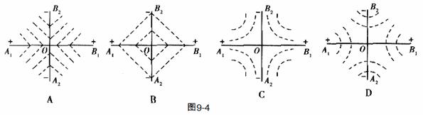 为两交线的交点,则图9-4中能正确反映等势面分布情况的是