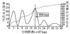 15.从图中可以看出,在700-1100km范围内出现了第二个客流分布高峰,其客源最主要来自