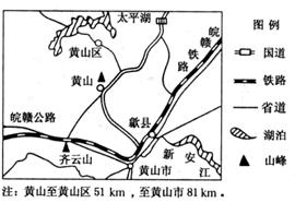 25.从材料二分析,影响黄山旅游客源的主要原因是:①经济条件 ②距黄山的距离远近 ③黄山的知名度 ④黄山的水陆交通