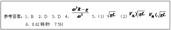 6、升降机内悬挂一圆锥摆,摆线为1米,小球质量为0.5kg,当升降机以2m/s2加速度匀加速上升时,摆线恰与竖直方向成θ=370角,试求小球的转速和摆线的拉力?