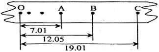 (3)如在此实验中,打点计时器所用电源频率为50 Hz,当地重力加速度值为9.80m/s2,测得所用重物的质量为1.00kg。若按实验要求正确地选出纸带进行测量,测量得A、B、C三个计数点到第一个点O的距离如图所示,单位均是cm,那么(计算结果均保留三位有效数字):