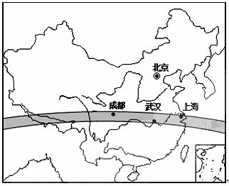2009年7月22日上午9时左右(北京时间),千年一遇的日全食自西向东扫过我国长江流域(如下图阴影所示)。读图完成2题。