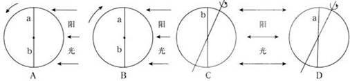 4.如果用a 表示晨线,b 表示昏线,下列各图表示正确的是( )