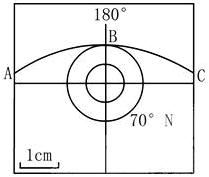 下图表示全球处在同一日期时,曲线ABC上的太阳高度为0°,请读图后完成下列9-11题。