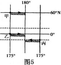 18.甲、乙、丙三艘船同时出发驶向180o经线,而且同时到达,速度最快的是( )