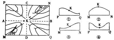 20.为正确显示K地的地形起伏,沿图中MN、PQ线作地形剖面图,表示K点位置的正确组合是( ) K^S*5U.
