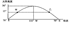 下图表示某日北半球某纬线上不同经度的太阳高度分布规律。读图回答23题。![]()