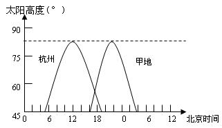 (1)这一天杭州的昼长为 小时;甲地的昼长为 小时;两地的时差为 小时。