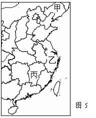 图5为“我国部分地区图”,读图完成13-14题。