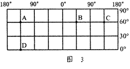 (2)A、B、C、D四地纬度从高到低排列的顺序是 。