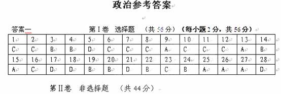 29(14分)(1) 中国特色社会主义事业必须坚持以中国共产党为领导核心。只有坚持中国共产党的领导,才能始终保持现代化建设的社会主义方向;才能维护国家的统一、民族的团结,并为社会主义现代化建设创造稳定的社会环境;才能最广泛、最充分地调动一切积极因素搞好社会主义现代化建设。(8分)