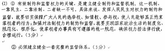 32(12分)(1) 权力是把双刃剑.政府权力运用得好,可以指挥得法、令行禁止,造福人民;权力一旦被少数人滥用,而又失去有效的监督制约,就容易超越法律界限,滋生腐败。材料两位高官的堕落就充分说明了这一点。(6分)