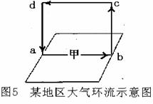 6.如果该图表示东亚季风环流,a处是亚欧大陆,则甲处的风向是