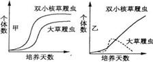 下面甲、乙两图分别表示大草履虫和双小核草履虫单独培养(甲)和混合培养(乙)时的种群增长速度。从该图所示的结果可以推断( )
