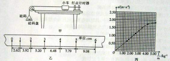 (1)在没有平衡小车与桌面之间摩擦力的情况下,打出了一条如图乙所示的纸带。计时器打点的时间间隔为0.02s.从比较清晰的点起,每5个点取一个计数点,量出相信两计数点之间的距离如图乙所示,则小车的加速度a= m/s