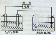 28.(15分)如图所示电极a、b分别为Ag电极和Pt电极,电极c、d都是石墨电极。通电一段时间后,在c、d两极上共收集到336mL(标准状况下)气体,c、d两极产生的气体体积之比为1:2。回答下列问题: