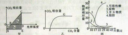 的面积大小表示有关生理过程中产生或消耗物质的量;丙图为油菜种子在成熟过程中各种有机物变化情况。请根据图回答下列回题: