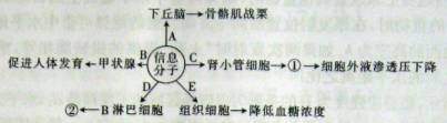 33.(10分)下图是人体内某些信息传递机制的模式图。字母A~E表示信息分子。数字表示相关的生理变化。请根据回答下列问题: