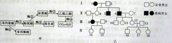 (2)图乙是一个尿黑酸症家族系谱图,请分析回答相关问题: