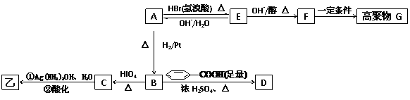 (2)经红外光谱测定,在甲和A的结构中都存在C=O双键和C-O单键,B在HIO4存在并加热时只生成一种产物C,下列为各相关反应的信息和转化关系: