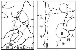 (1)图中农业区A为 (国家) 平原,B是 (国家)