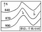 C.a点地势低,自转线速度大 D.b点地势高,自转线速度大