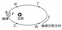 下图所示是地球公转的轨道图,图中甲、乙、丙、丁四点将轨道均分成四等份,读图回答15-16题。