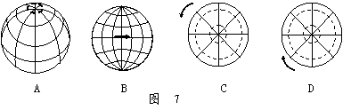 站在昼半球的中心点上空俯视,则所见的地球部分可能为图7中的