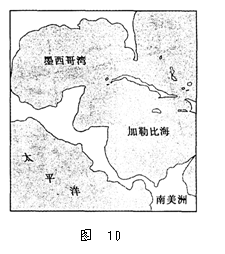 2010年4月20日,位于墨西哥湾的一座海上钻井平台起火爆炸,导致原油大量泄漏。图10为“墨西哥湾和加勒比海地区略图”。读图回答问题。(13分)