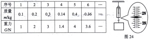 (2)实验中,测某物体的重力如图24所示,则该物体质量为__________ kg。