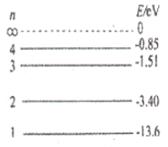 发态,当向低能级跃迁时辐射出若干不同频率的光。关于这些光下