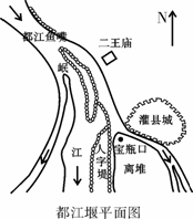 都江堰坐落在成都平原西部的岷江上,是举世闻名的中国古代水利工程。主体工程包括鱼嘴分水堤、飞沙堰溢洪道和宝瓶口进水口。(右下图)
