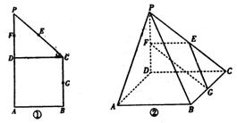 (15分)如图①在直角梯形ABCP中,BC∥AP,AB⊥BC,CD⊥AP,AD=DC=PD=2,E,F,G分别是线段PC、PD,BC的中点,现将ΔPDC折起,使平面PDC⊥平面ABCD(如图②)