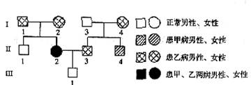 ⑶若Ⅱ-2和Ⅱ-3再生一个孩子,这个孩子同时患两种病的几率是 。