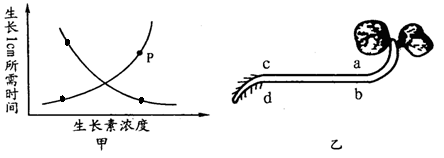 21.测量根和茎生长素浓度与其生长状况的关系如甲图所示。将植物横放,测得a、b、c、d四点生长素浓度并标于曲线上。则曲线上P点最可能对应于乙图中的位置是