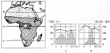 (1) 图中①为 气候类型区;该气候类型相应的“气温-降水曲线”为由图中的 (a或b)。