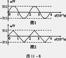9.图11-8中图1、图2分别表示两种电压的波形,其中图1所示电压按正弦规律变化,下列说法正确的是 ( )