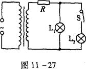 11.用电高峰期,电灯往往会变暗,其原理可简化为如下问题.如图11一27所示,理想变压器的副线圈上,通过输电线连接两只灯泡L1和L2,输电线的等效电阻为R,原线圈输入恒定的交变电压,开始时,开关S断开,当开关s闭合时,以下说法正确的有( )