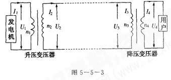 18.如图5-5-3所示。某小型水电站发电机的输出功率为10 kW,输出电压为400 V,向距离较远的用户供电,为了减少电能损失,使用2kV高压输电,最后用户得到220 V、9.5 kW的电力,求: