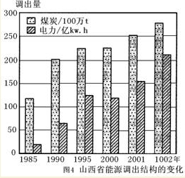 A.压缩生产规模 B.减少资源开发 C.倡导循环经济 D.控制人口数量 6.图4所示山西省能源调出结构变化所带来的影响是