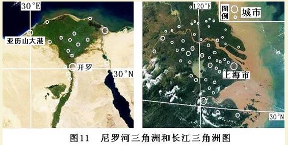 36.(共36分)读图11“尼罗河三角洲和长江三角洲图”,回答问题。