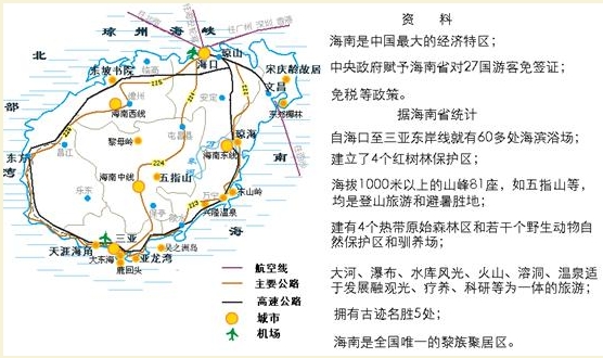 39.(28分)海南是我国最大的经济特区和唯一的热带岛屿省份。建省办经济特区20多年来,经济社会发展取得显著成就。为推动海南的继续发展,2010年1月4日国务院关于推进海南国际旅游岛建设发展的若干意见发表。海南国际旅游岛建设拉开帷幕。结合所学回答下列问题。